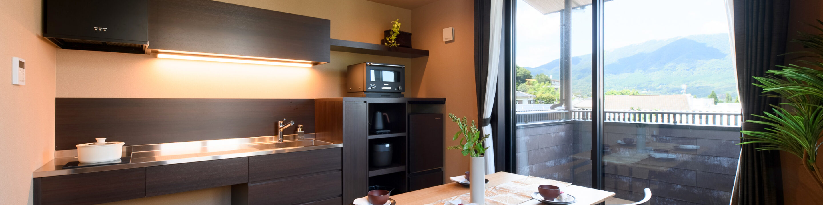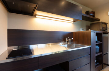 広々としたキッチンには最新設備を揃えております。食材を持ち込んでお料理や晩酌のおつまみ作りをお楽しみください。