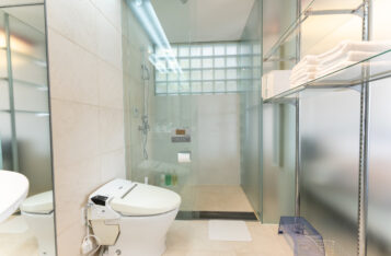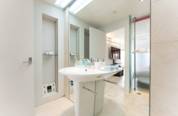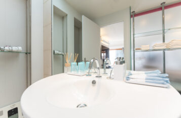 展望風呂&シャワールーム付きで、混雑を気にせず快適。